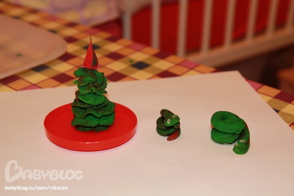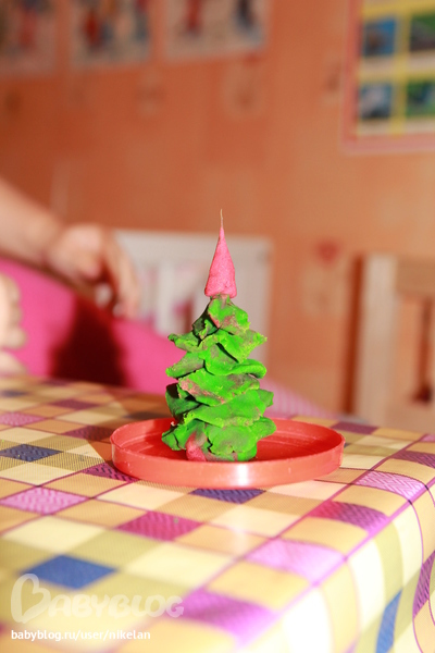 Итак, мы лепили Ёлочку из "блинов", которые нанизывали на зубочистку)))