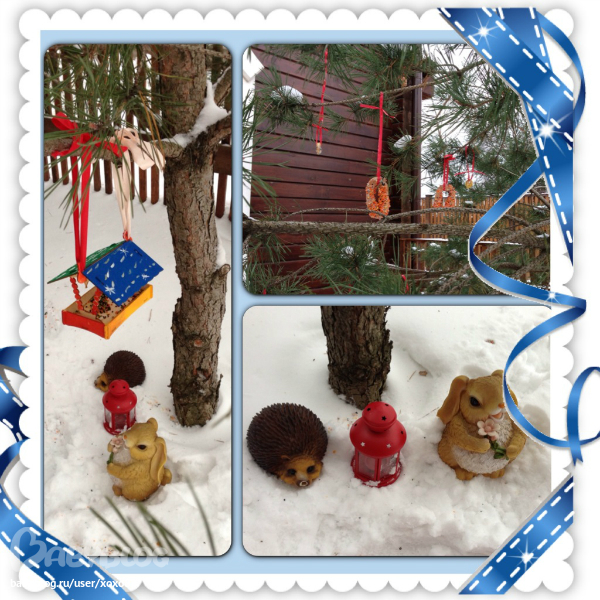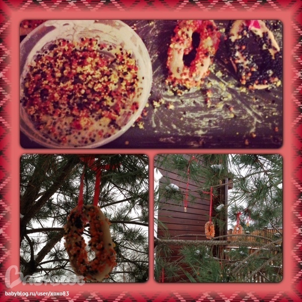 Угощение для птиц: вода и мука - это "клей", сушки и крупа на них, собственно угощение, оказывается так просто)))