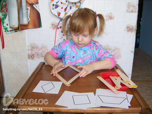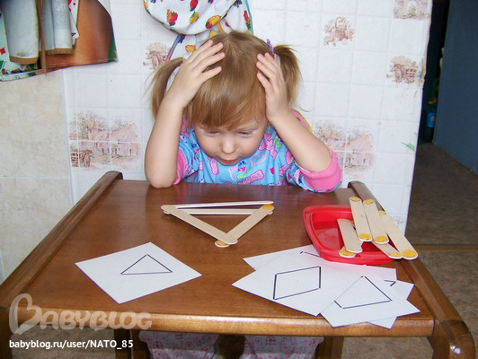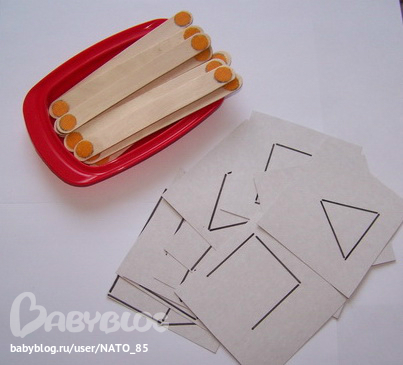 4. И еще одно задание с использованием шпателей - собери фигуру по образцу. На шпатель приклеила липучку и с ее помощью они легко фиксируются между собой.