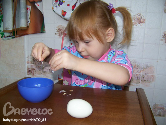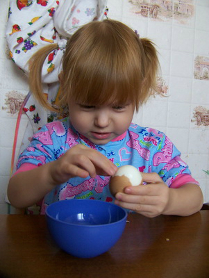 7. Последнее задание - веселое и вкусное. Нужно сначала почистить яичко, а затем его съесть!