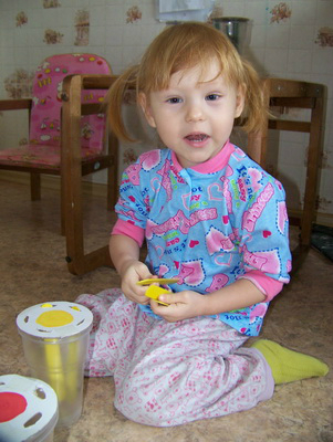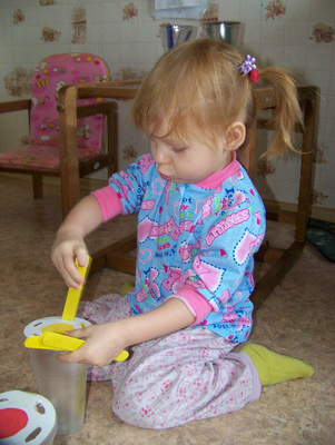 Очень Лизе это понравилось, но так как баночки легкие и постоянно падали нам пришлось переместиться на пол)))