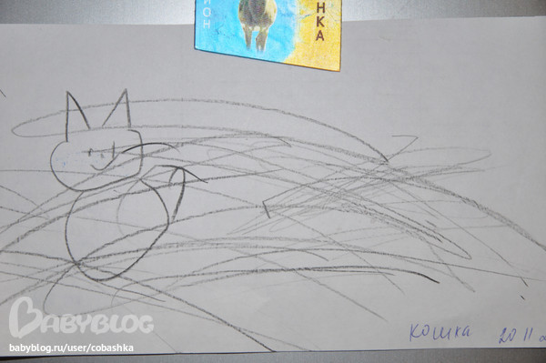 Егор усвоил, что кошка лакает язычком молоко. Высовывает язык и показывает как кошка лакает.