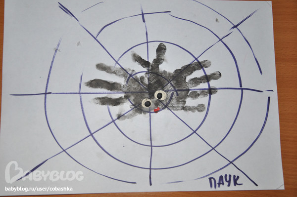 Творчество. Рисовали ладошками паука на паутине.