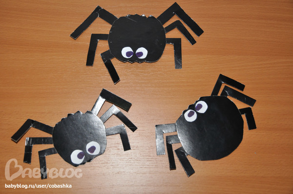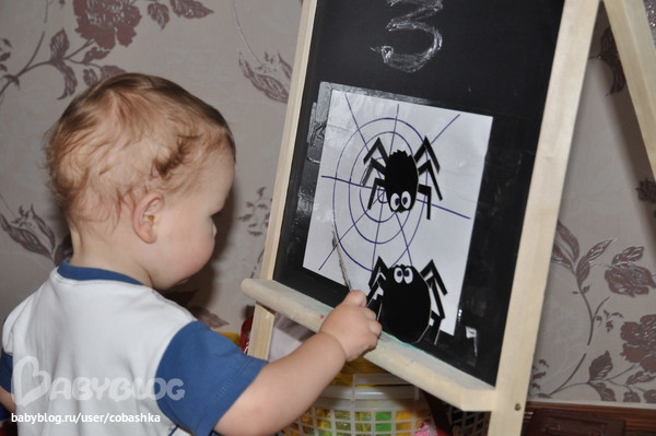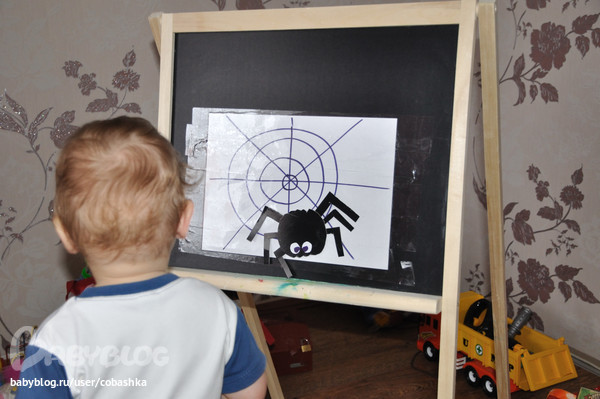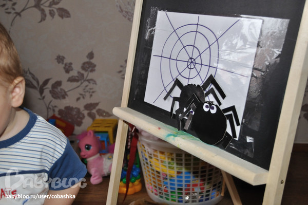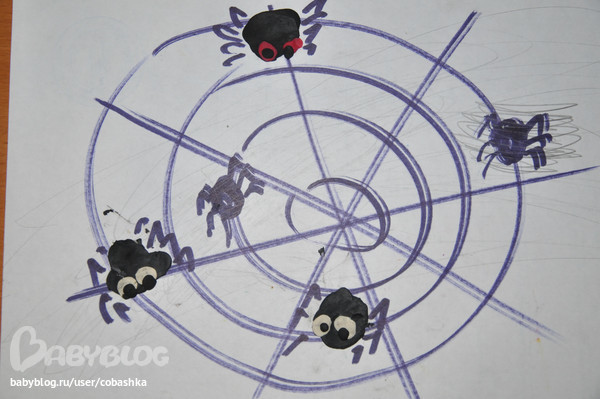 Прятали пауков (закрашивали их карандашом). Лепили пауков на паутину.