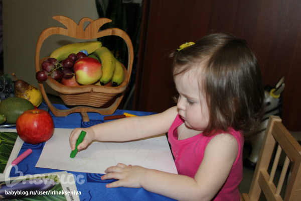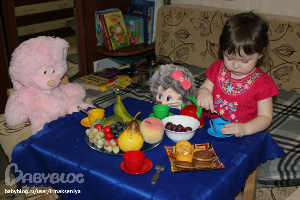 Предложила я Ксешке корзинку с фруктами не настоящими, но Ксюша даже смотреть на них не стала и тут же потребовала настоящие фрукты) и пока не перекусила, занятия не начались))))))))