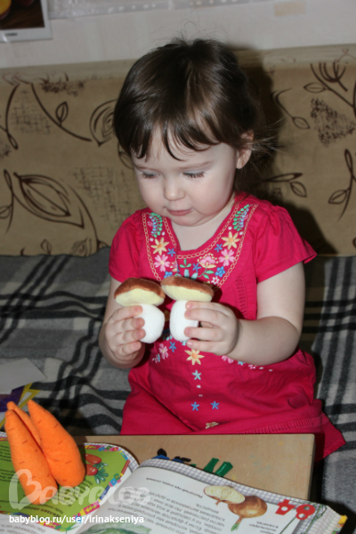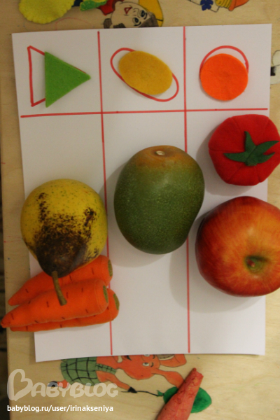 Как ни странно безошибочно все распределила, но я думаю, это из-за того, что мы уже очень давно играем с этой корзинкой и я всегда когда брала что-либо, акцентировала внимание на том что это овощ/фрукт.