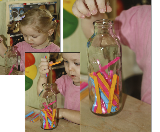Складывали наши палочки в бутылку. При этом досчитали до 15, а дальше Софья взяла оставшиеся и забросила их туда. И напоследок сказала, что это подарок для мамы. Т.е. для меня ))