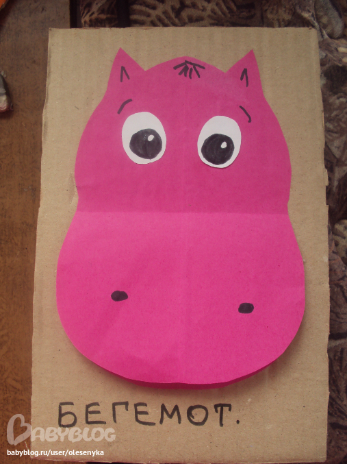 просто так сынуля заниматься не желает))приходится сидеть в нете до 2х ночи, чтобы найти чего нибудь интересненькое. вот нашелся бегемот)) планах сделать льва и крокодила. ну и пингвина, конечно(любимое Темино животное)))