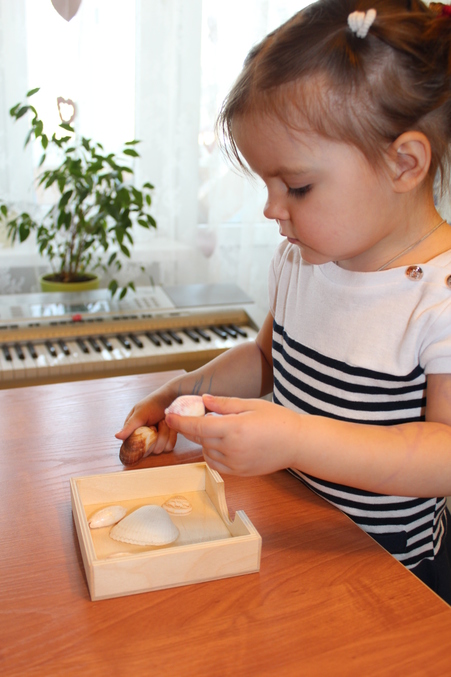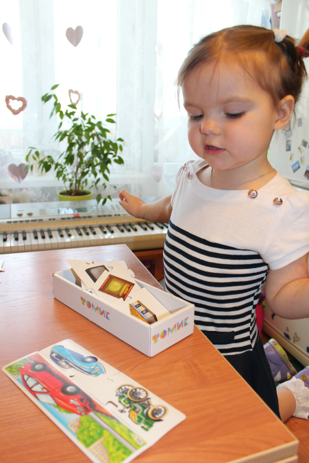 Алисик сначала немного смутилась, пытаясь сообразить в ячейку какого ряда необходимо положить фигурку, но вскоре сооринтировалась и, если клала неверно, то сама же ошибку и исправляла.