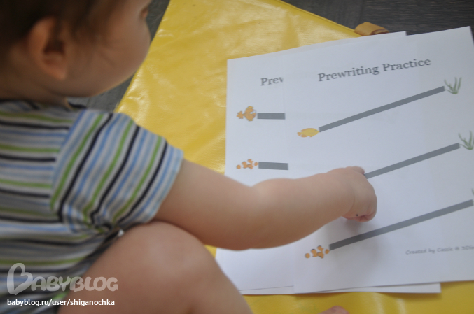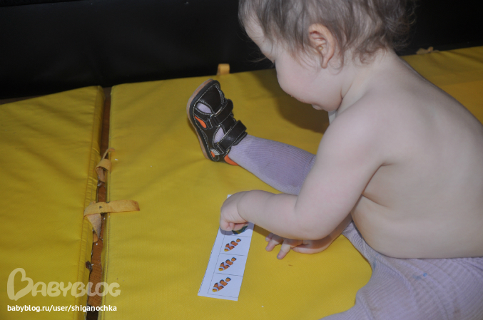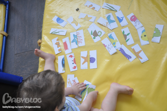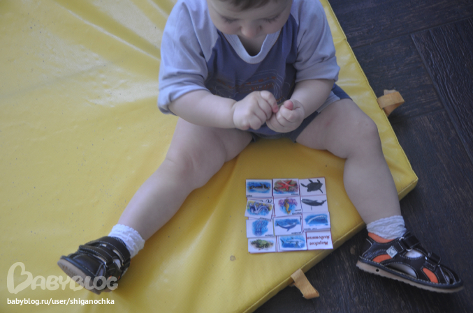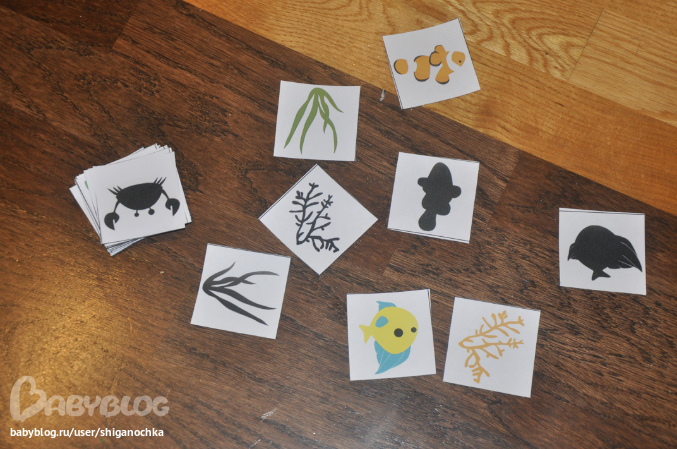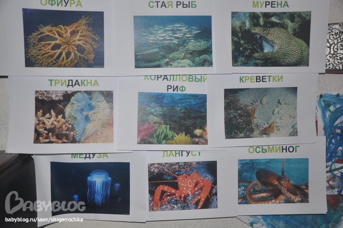 Еще из интернета скачала карточки с подписями - и тоже повесила, мы их тоже рассматривали активно. С первого взгляда очень понравился Кальмар и сразу появилось новое слово "Каймай".