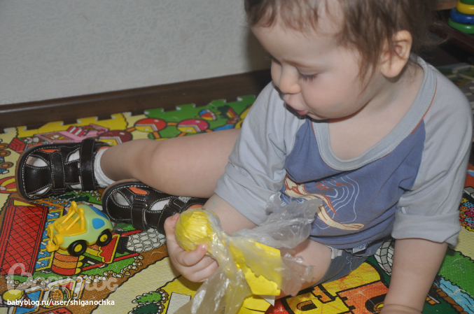 Идея классная! Играли два дня подряд. Конечно не много боязно Костя трогал эту массу ручками, но животных доставал уверенно. Потом снова складывал и кричал "Опать!"