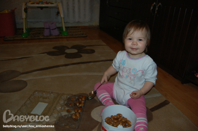 Для меня это удивительно, чтобы ребенок так хорошо все это делал. Моему уже 2 года, но он совсем не усидчивый, ему и сейчас не хватит терпения вот так сидеть и раскладывать что-то, а тем более еще и ложкой.