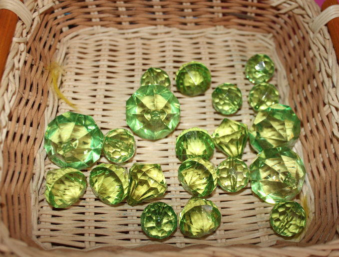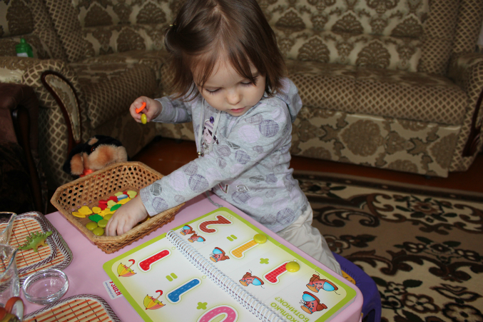 Начали мы с сортировки- три вида бусинок - два вида алмазиков и кругленькие бусинки - давно хотела предложить Алисику такую занимашку, но подходящие бусины не попадались.