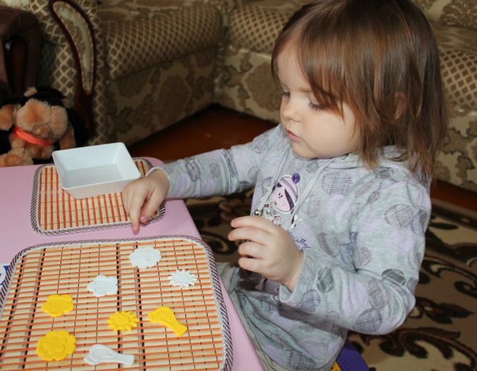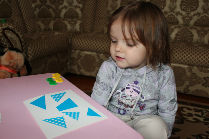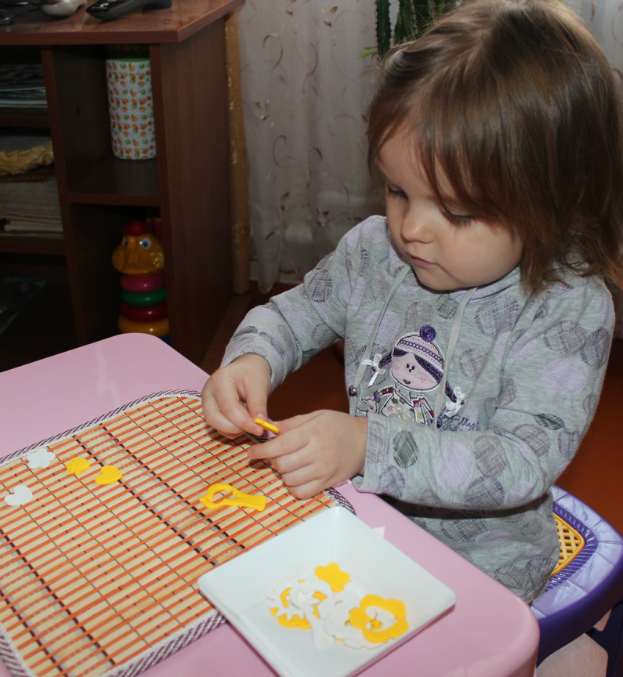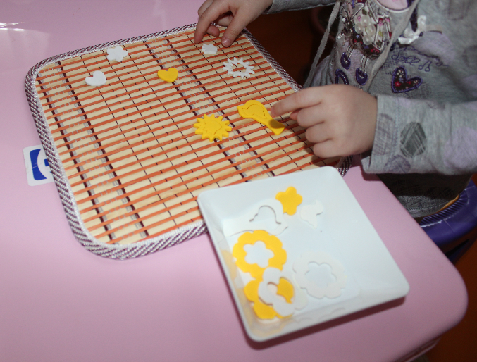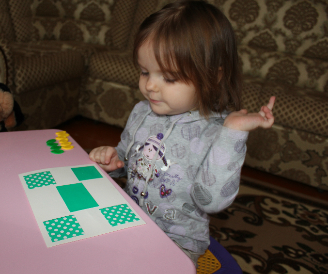 А потом самодельная развивашка - в принципе, ничего сложного, но интересно! Я сама с удовольствием подбирала нужные элементы. Необходимо по цвету и по форме определить и аккуратненько встатавить элемент.
