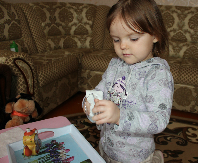 Потом были еще и другие вариации, конечно! А в конце Алисик протерла посуду салфеточкой.