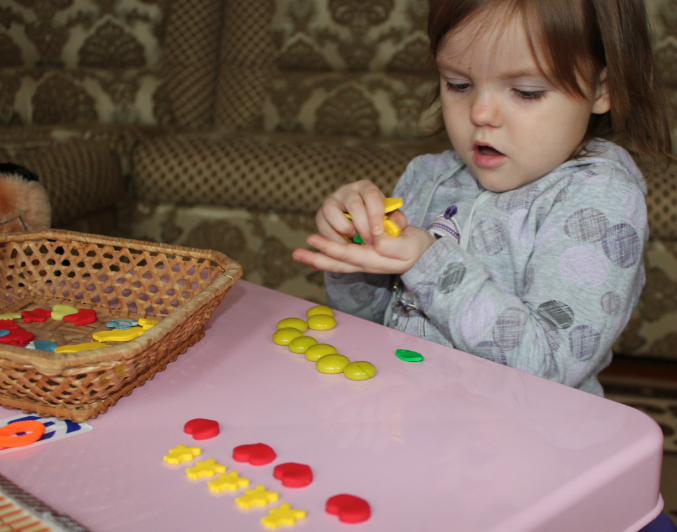 Смысл в том, что если раздвинуть ряд, но оставить прежнее число объектов, то ребенок будет считать, что например, сердечек больше (как в нашем примере).