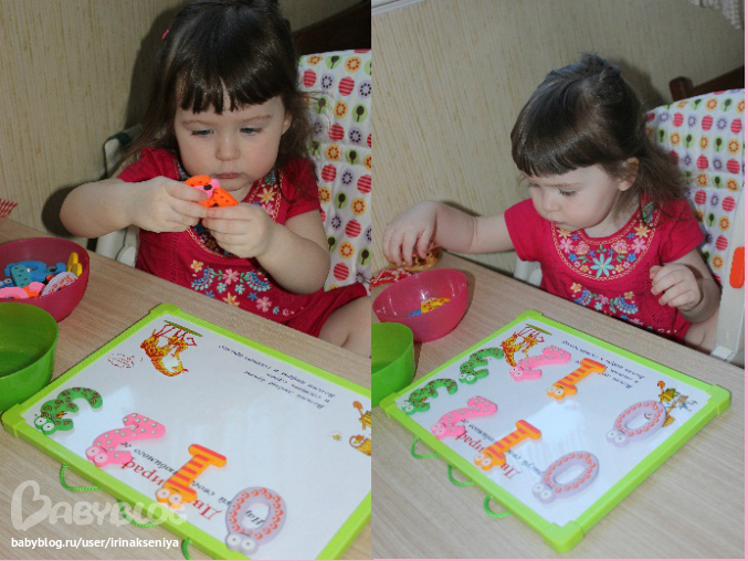 На магнитной доске нужно было повторить ряд который расположен сверху, пока цифры от 0 до 3 и произнести их.
