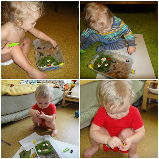 Вторая наша сенсорная коробочка (обожаю их) по ТН Насекомые вышла очень забавная. Называется она "Где чей домик?".