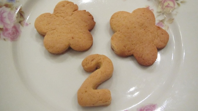 грейпфруктовое печенье с трафаретами- цифры. Лепили цифру, а потом столько же кружочков.