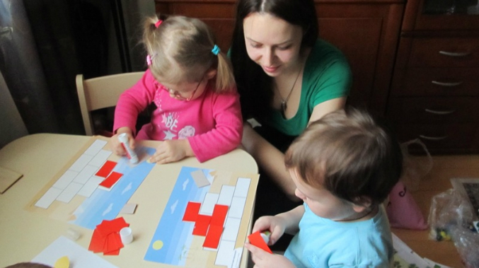 Занятие прошло хорошо, дети прекрасно занимались. Степа немного отвлекался. Один на один он более сконцентрирован на мне и заданиях. Но думаю это потому что была новая атмосфера для занятий. Он привык, что с Дашей и Гошей он играет и бегает, а тут что-то новое. Но думаю, что он привыкнет, к тому же полезно и потренироваться, не всегда ж с мамой будет заниматься. Дашуля умничка, все так хорошо делала, потом бегала и просила еще задания. И конечно же дух соперничества играл большую роль. Каждый хотел сделать быстрее и быть первым)