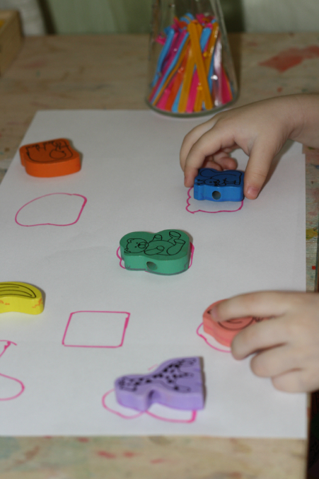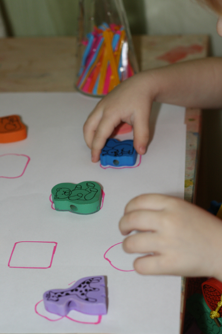 Сделала лото по фигуркам-бусам. Соня справилась хорошо, хоть и тени фигурок были значительно больше.