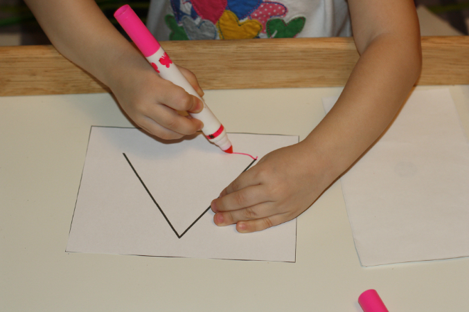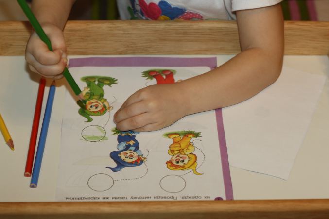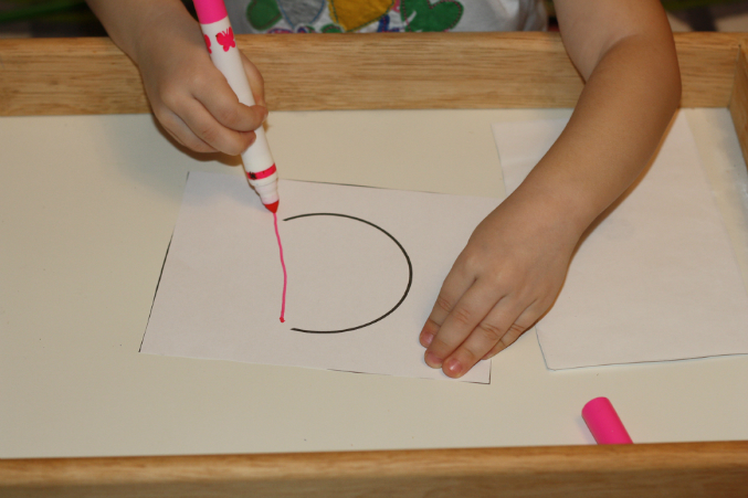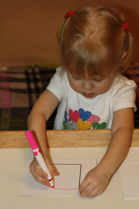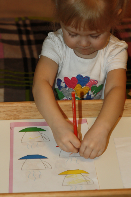 Обводилки. Почти что ровно обвела. Затем показала на пальцах, сколько это - один.
