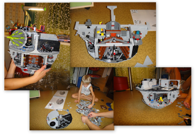 Затем конечно пошли большие комплекты. Это и Лего техникс красная спортивная машина, и различные истребители и Звезда смерти. И если Машину Ваня собирал целых 5 месяцев, то Звезду смерти он собрал за 3-е суток.