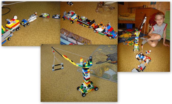 В один прекрасный момент Ваня осознал, что деталей у него очень много и их хватит на любую фантазию. Он начал играть. Он строит машины, ракеты, придумывает необычные машины, строит различные корабли, устраивает межгалактические войны и прочее... Играет с человечками (мини фигурки).