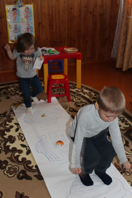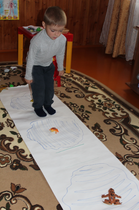 И в завершение - самое веселое занятие )) Перепрыгивание через прудики с лягушками))