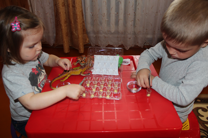 И снова про икру )) На этот раз пинцетиками нужно было извлечь из колбочек меленькую икру! В роли икры - шариковый пластилин )