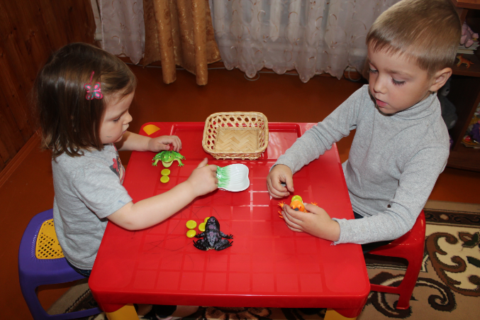 Детки уже с самого начала занятия мечтали накормить лягушек ))