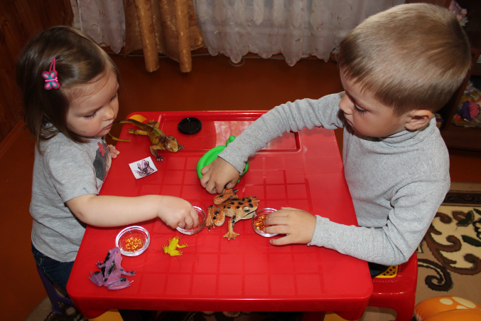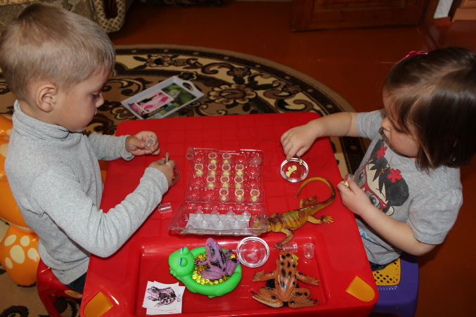 Лягушки питаются насекомыми, вот как раз их и нужно было отыскать среди фигурок.