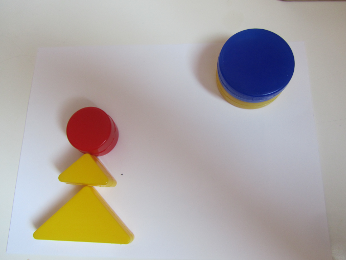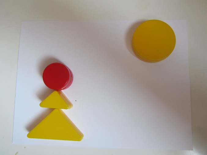 Один лист ложим перед собой, второй ребенку. Почему листы а не просто на полу например, я считаю так лучше выделяются фигуры и внимание ребенка не рассеивается. Рассказываем сказку ребенку и при этом складываем героев из фигур на своем листе- ребенок повторяет за вами