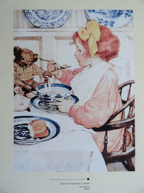 А благодаря картине с завтракающей девочкой, которую я повесила как-то на кухне, дочка научилась правильно держать ложку)) Смотрела, смотрела и взяла также))