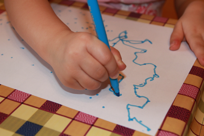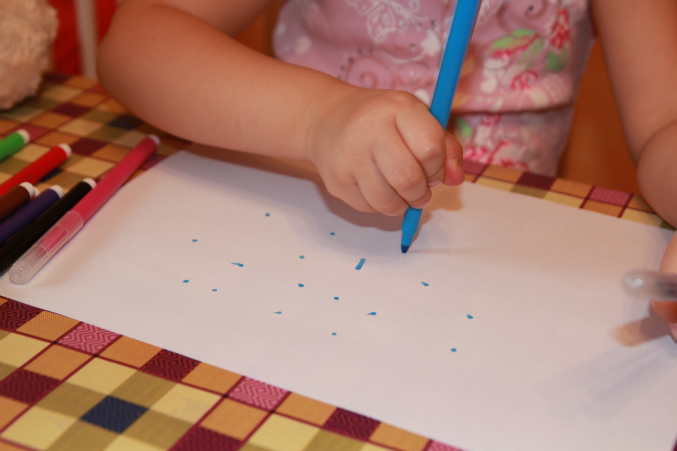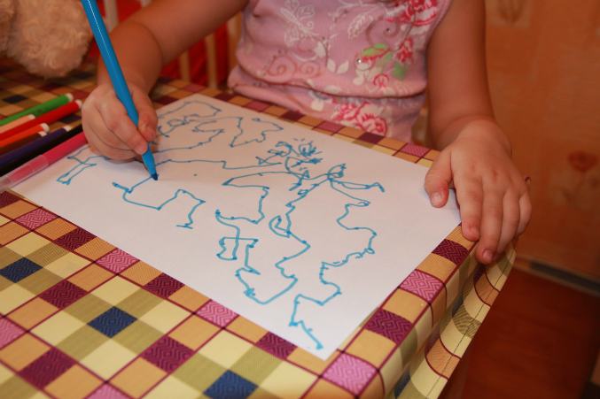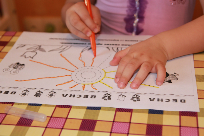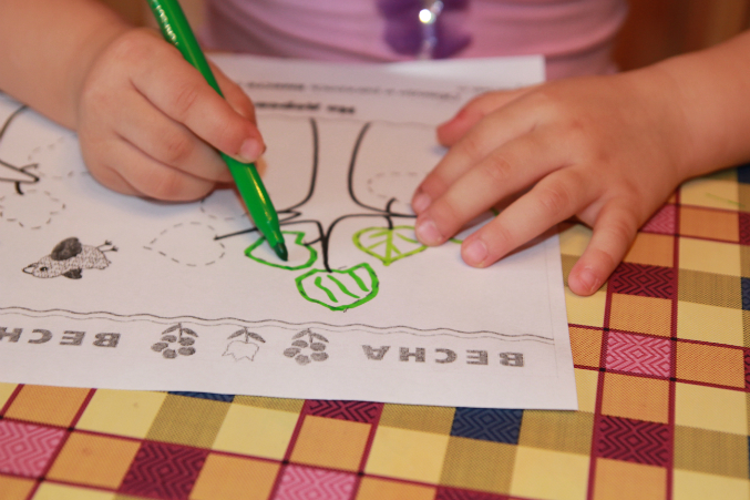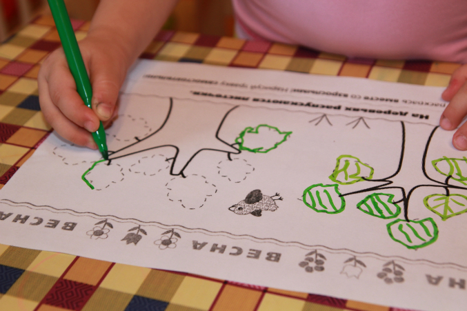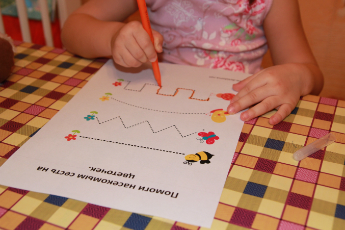 Очень здорово, что сначала я показываю на своем листе, а потом дочь повторяет на своем.