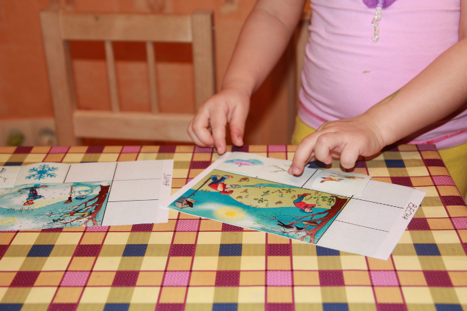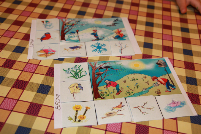 Лото "ВРЕМЕНА ГОДА", я предложила две карточки на тему зима и весна.