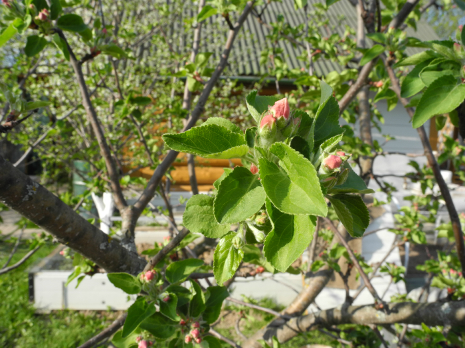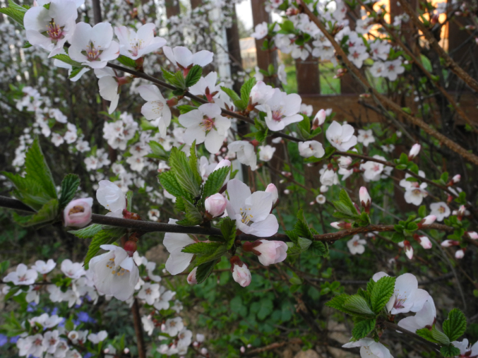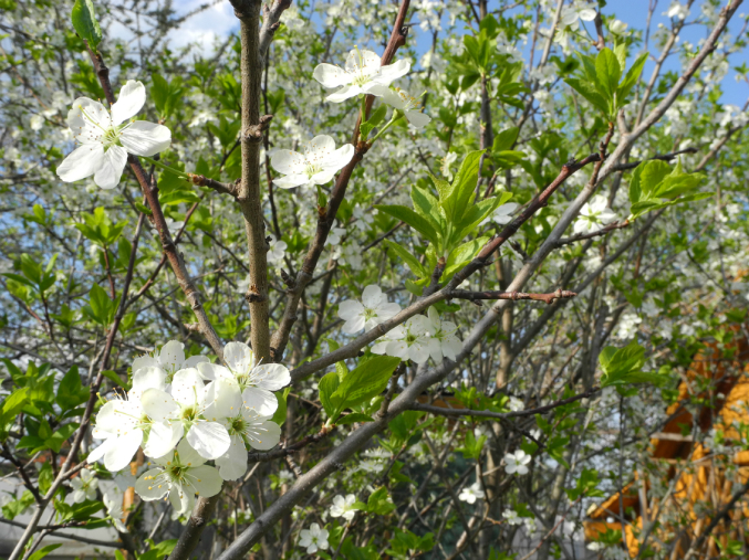 На даче мы наблюдали цветение деревьев, кустов, а также первые весенние цветы.