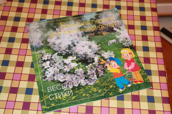 Отличная книга "Большая поэзия для маленьких детей" от изд-ва Мозаика-Синтез. Очень нам понравилась, Перввое время читали каждый день перед сном. Настя много цитировала. Большой формат и СУПЕРСКИЕ иллюстарции (картины акварелью) к стихотворениям на тему весна.