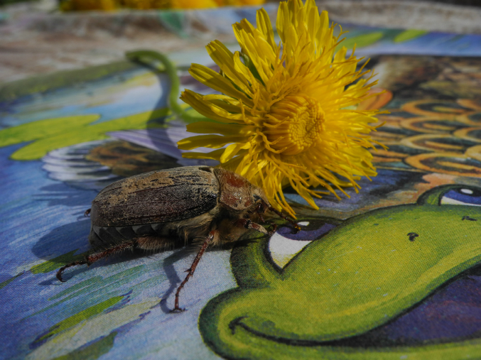 Этот майский жук что то рано выполз, в разгар дня, в тот момент, когда мы с Настей читали книгу под яблоней.