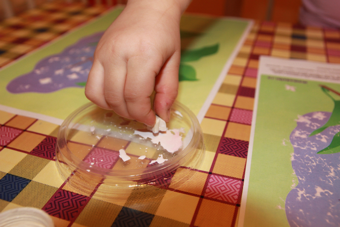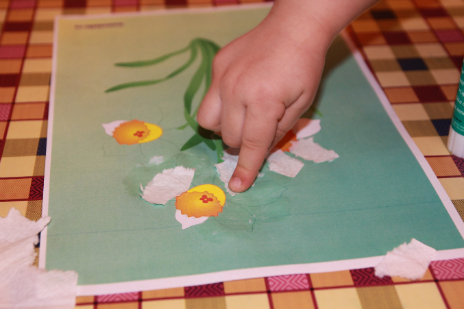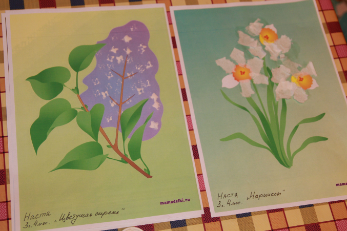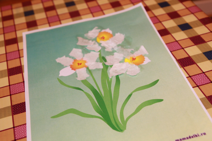 Еще немного творчества. Рвали салфетки для лепестков Нарциссов.