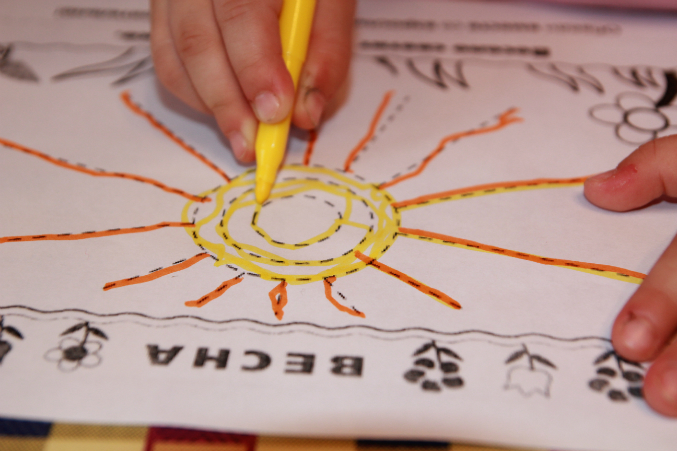 Занимались мы не каждый день и по чуть-чуть, т.к. с приходом весны стало тепло и мы стали долго гулять после детского садика.