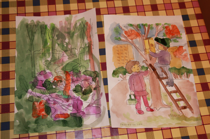а позже, раскрасив птичек на следующем рисунке, дала мне задние продлжить раскрашивание.