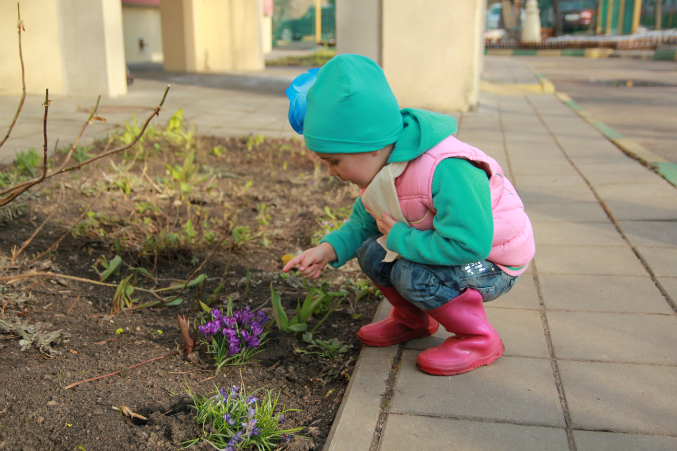 Первые цветы мы нашли как раз в детском садике. Очень красивые!
