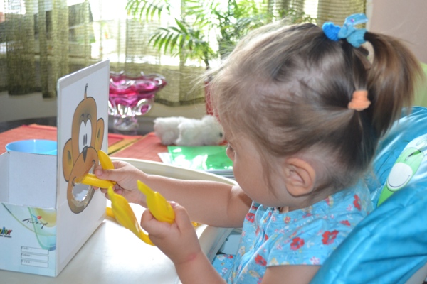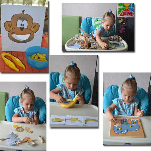 Как-то на амазоне я увидела одну игру, смысл - покормить обезьянку бананами с помощью пинцета. Бананы есть, пинцет тоже, а обезьянку сделать проще простого.