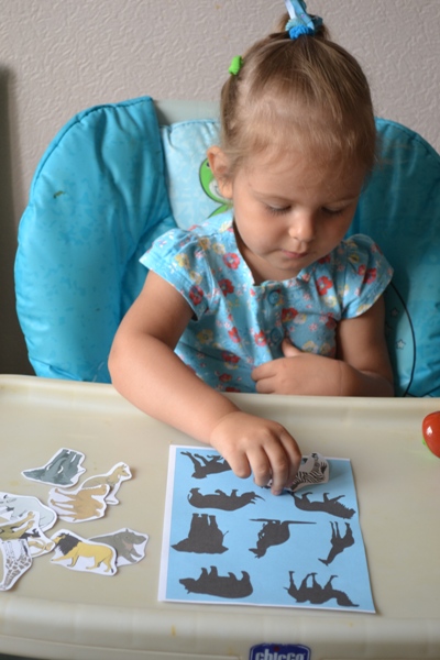 а потом уже поиграли и вспомнили фигурки животных, соотносили их с карточками