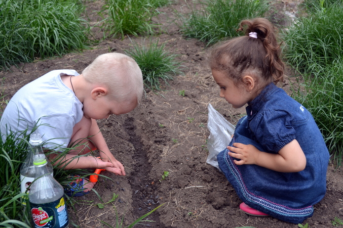 Пошли во двор и посадили семена, вот как это было.....