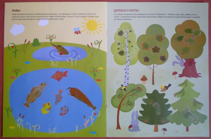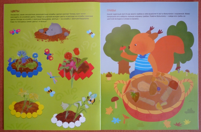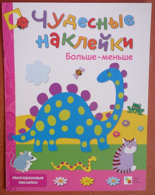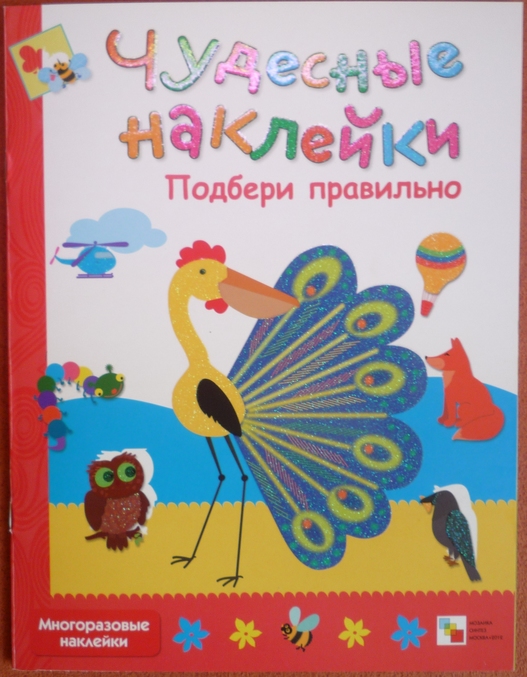 Альбомчик с действительно многоразовыми наклейками!С помощью заданий,предложенных в книге развивали мелкую моторику и мышление.В игровой форме предлагается сортировать :зверей(вспоминаем и находим лесных жильцов),птиц( перечитываем сказку Сутеева про глупого гуся!),насекомых ,рыб,грибы,цветы (предлагается сделать разноцветные клумбы.сортировка по цвету цветка). Сейчас с дочкой находимся в процессе собирания своего первого гербария,поэтому предложенное задание "подобрать к березе,клену,дубу,рябине,ели и сосне листочки" было встречено на ура! Порадовала игра-ходилка на последней странице,после этого задания дочка очень долго засыпала меня вопросам по типу "А автобус это какой вид транспорта?",но не дожидаясь ответа сама на них отвечала "Аааа,наземный!" Так дочка определила,что дракон (это самая её любимая карусель в парке аттракционов)-это воздушный вид транспорта)))