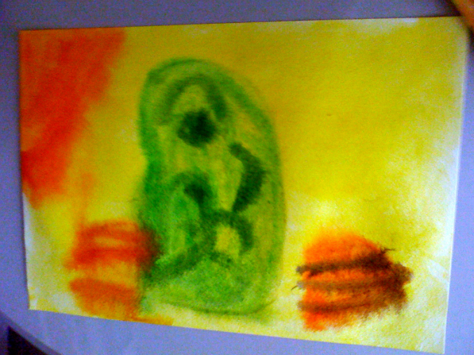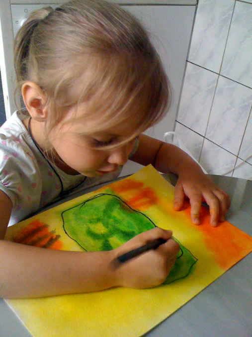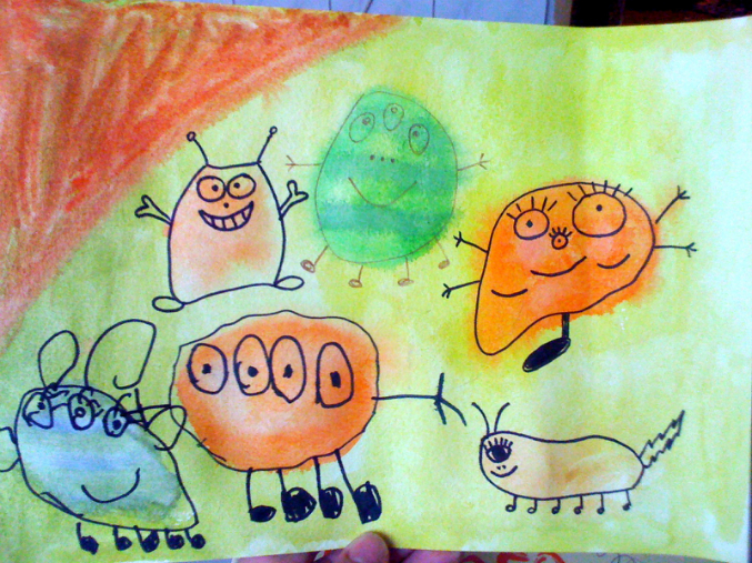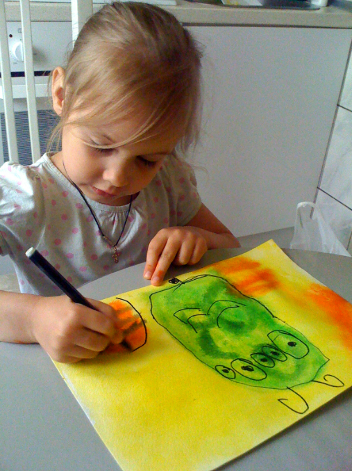 как высохнет берем черный фломастер и начинаем придумывать монстриков. Процесс довольно веселый))