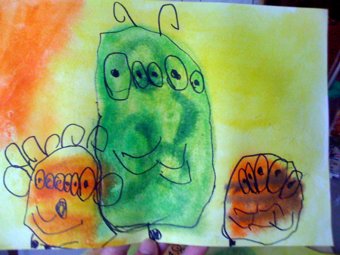 Рисовали акварелью. "Монстрики"