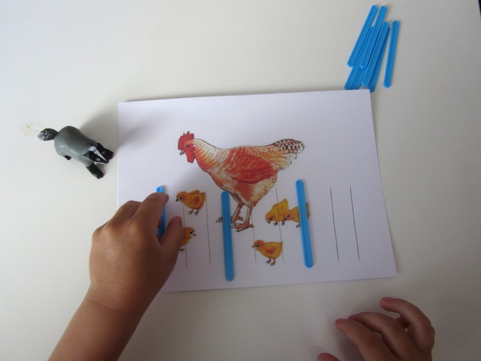 Прочитав стихотворение и рассмотрев соответствующую картинку, я задала несколько вопросов Кириллу о том, что на картинке, сколько цыплят, что они делают. и т.д.